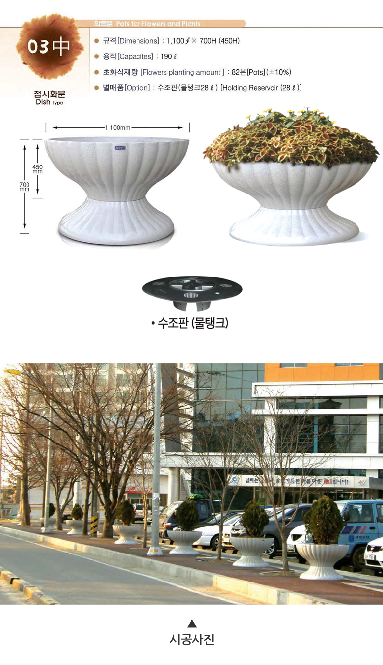 HOME > 조경용품 > 도로화분 > 29-6 O3형(中) 접시화분