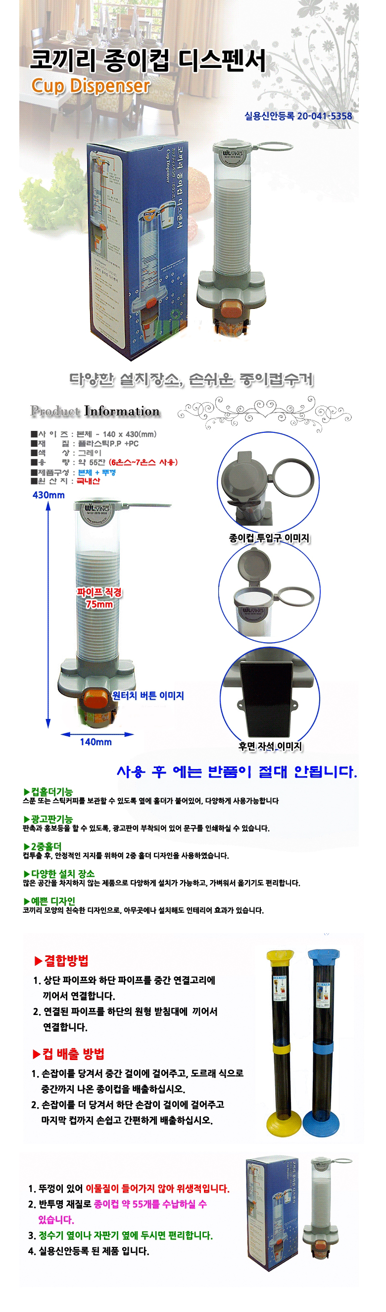 37-21 종이컵수거함(도르래) 자판기소형컵/6~9온스