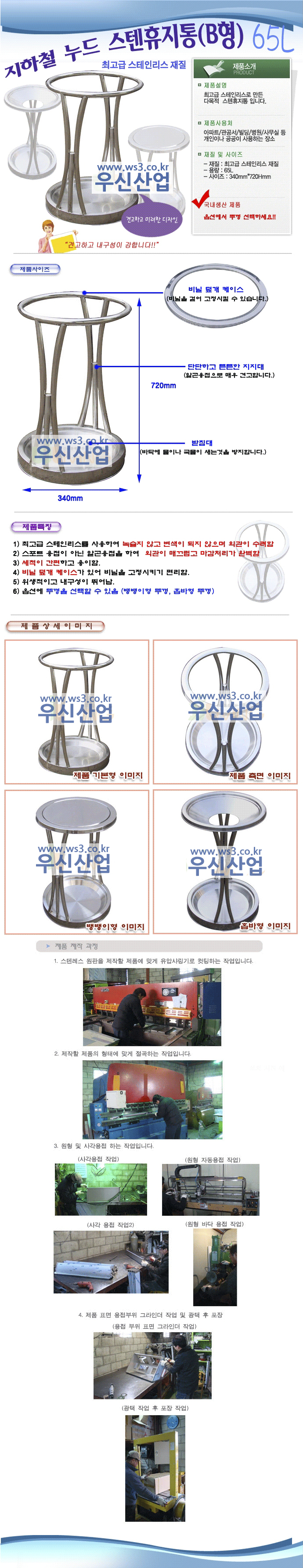 . 누드형스텐휴지통 (지하철B형/뚜껑 선택)