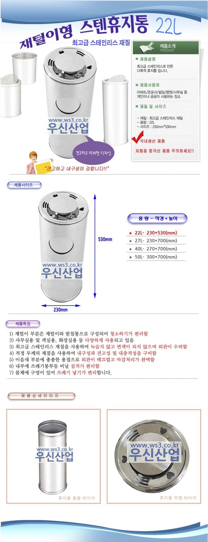 230*530(mm) / 용량 : 22리터