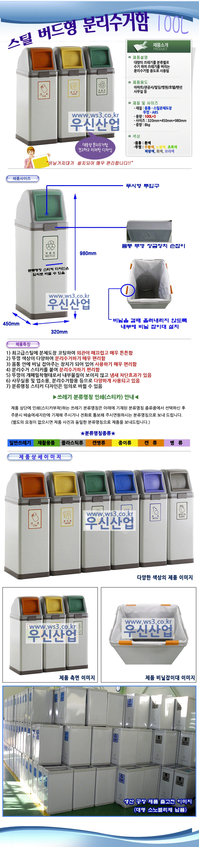 960*450*980(mm), 100리터*3