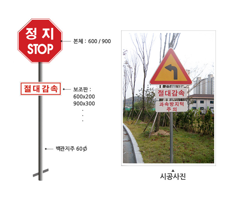 *본체,보조판:알루미늄+일반실사인쇄/고휘도반사인쇄 *지주: 스텐/백관