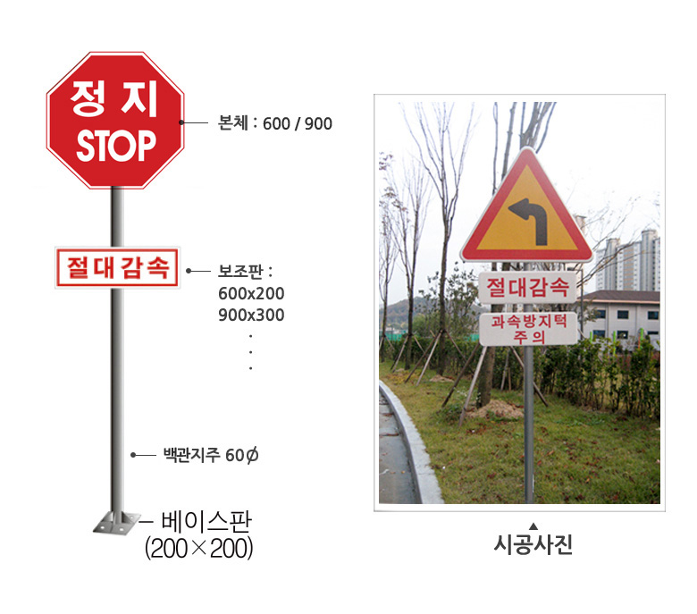 *본체,보조판:알루미늄+일반실사인쇄/고휘도반사인쇄 *지주: 스텐/백관