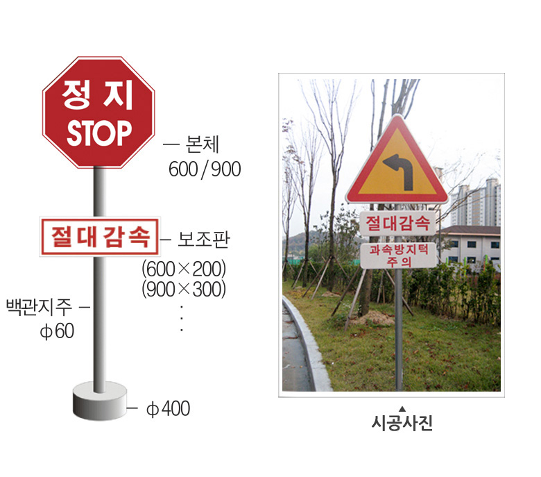 *본체,보조판:알루미늄+일반실사인쇄/고휘도반사인쇄 *지주: 스텐/백관