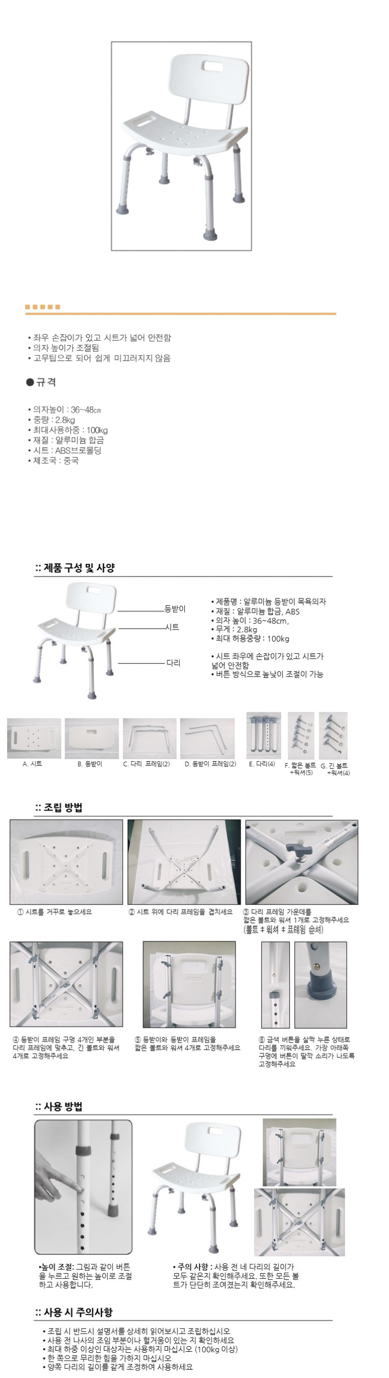 의자높이:36~48cm / 무게: 2.8kg / 최대 허용중량 : 100kg