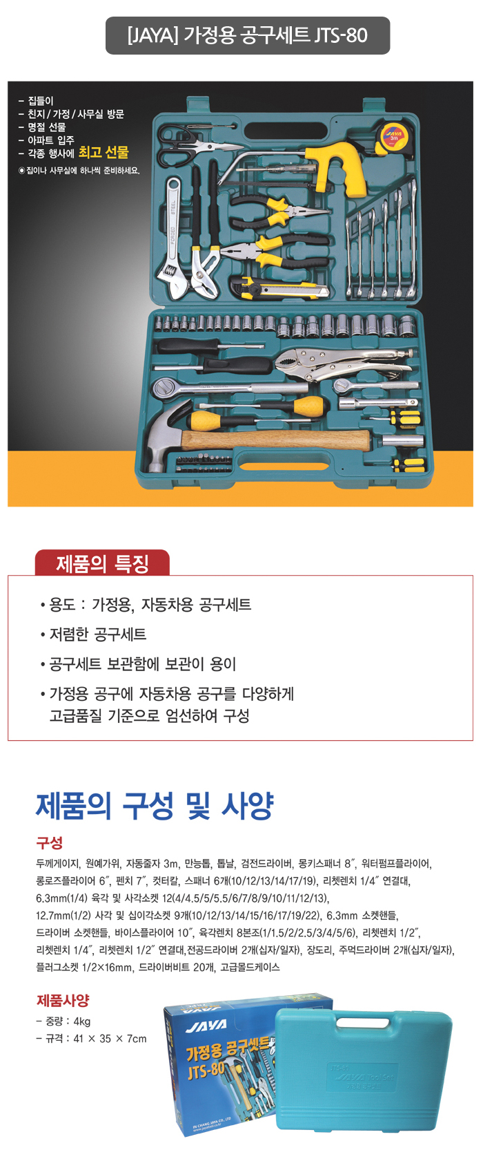 50-21 [JAYA]가정용 공구세트 JTS-80