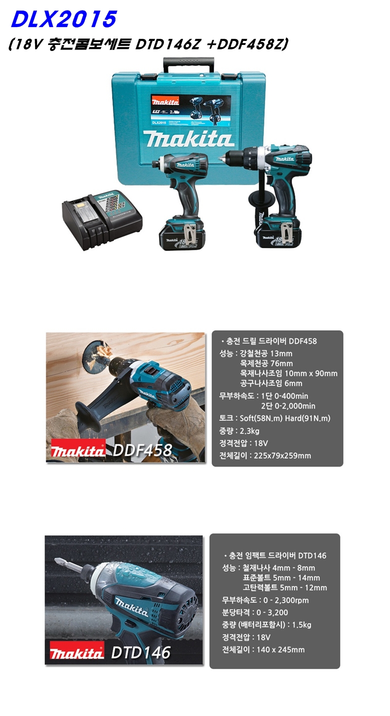 50-13 [마끼다]DLX2015 (18V 충전콤보세트) 드라이버드릴+임팩드라이버