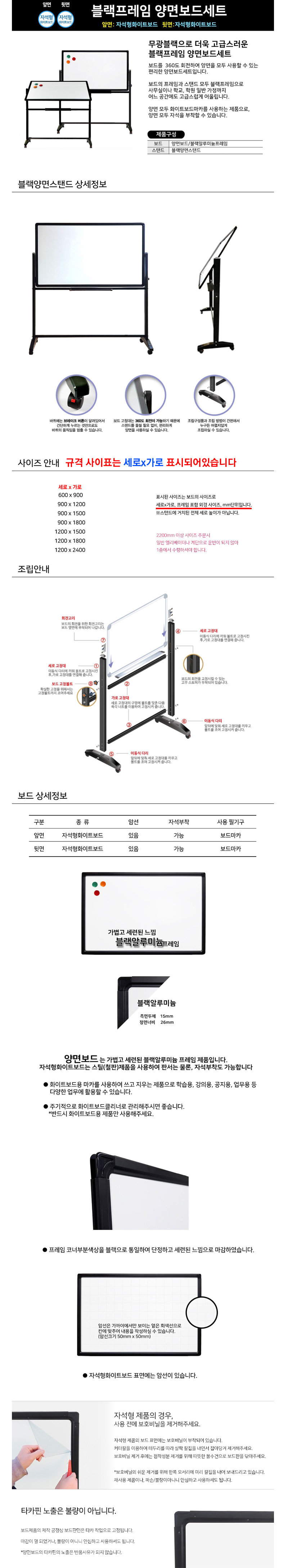 . 블랙프레임 양면보드 (자석형/자석형)+양면스탠드 세트