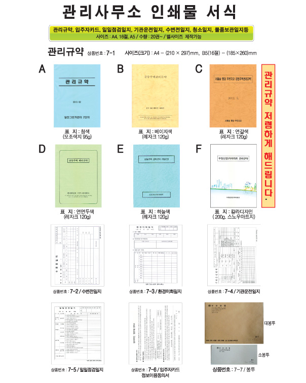 7-3 환경미화일지 경비일지 A4크기(모조지 80g 양면인쇄)