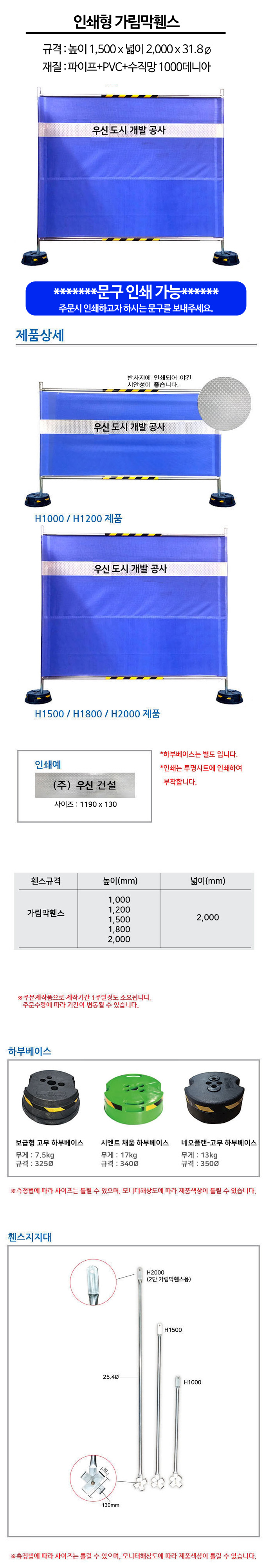 [인쇄형]가림막휀스 기성품(높이1,500mm x 넓이2,000mm x 31.8Φ)