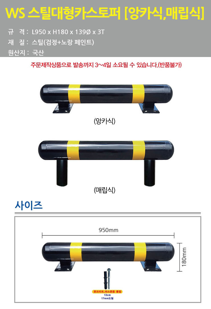 WS스틸대형카스토퍼 [앙카식,매립식]