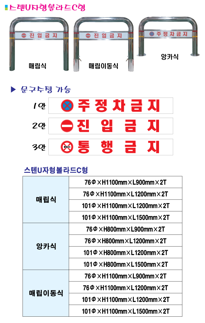 . 스텐U볼라드C형 (앙카식) / 국산