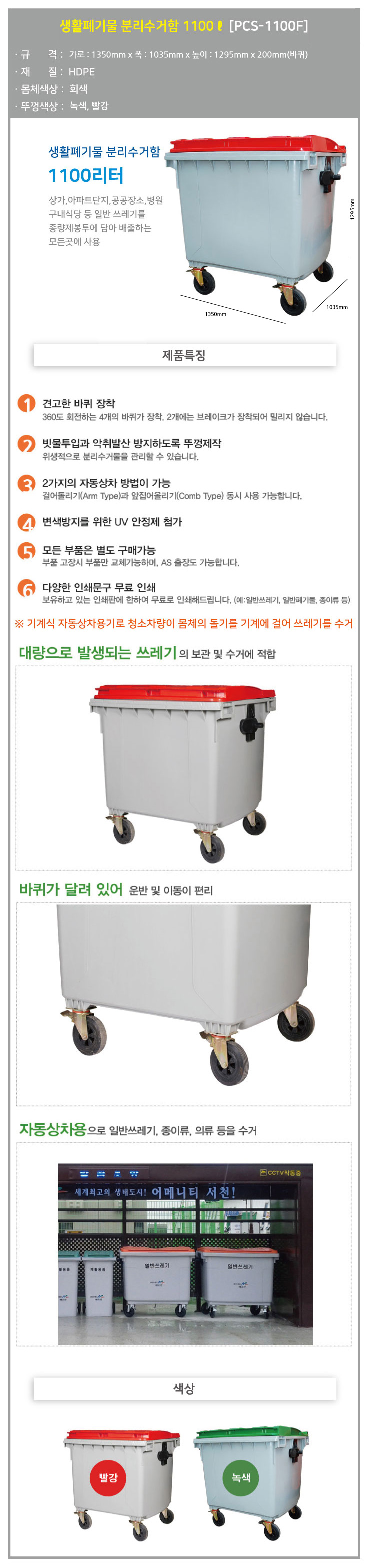 . 분리수거함 1100리터 [PCS-1100F] / 국산